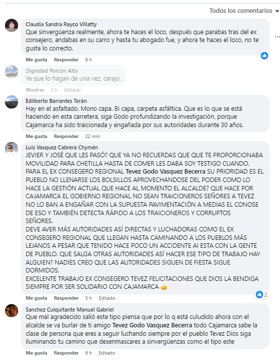 Entre tanto los cibernautas en la red social de Facebook, le recordaron a Javier Alva, que Godo Vásquez le dio comida, movilidad y hasta fue su abogado gratuitamente, eres un «sinvergüenza» le indicaron.
